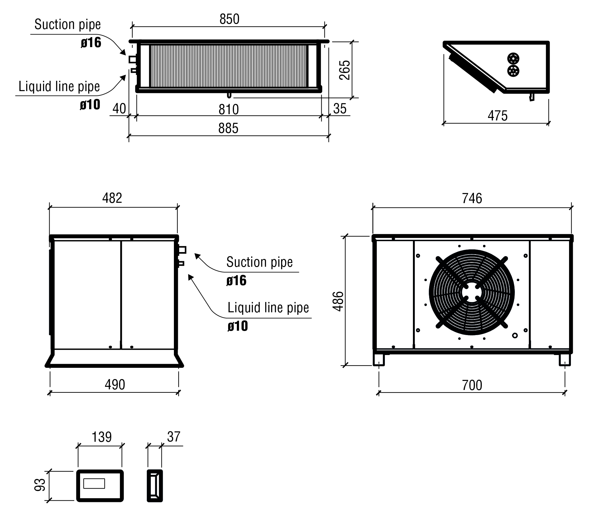Afmeting verdamper bxdxh (mm): 885x475x265