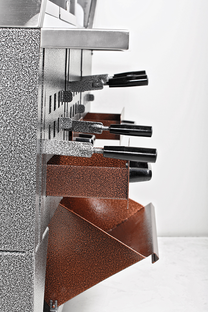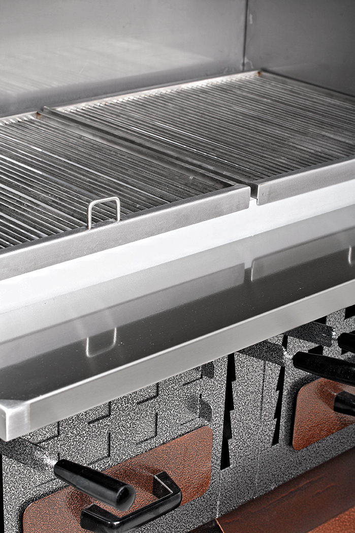 - Grill with two adjustable charcoal trays (510x530 mm).