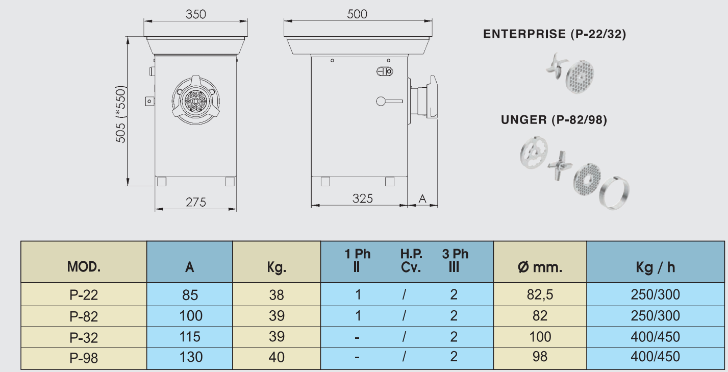 Single phase motor 230V. or three phase 230/400V. with cooling fan, maintaining a low operating temperature.