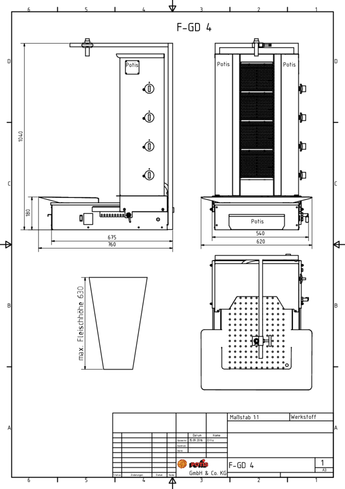 Potis Doner Gyros Grill - 4 Branders - Aardgas