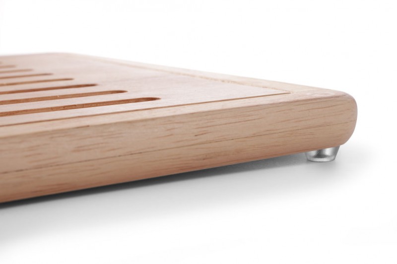 Verwijderbaar rooster, met kruimelopvang eronder. 4 antislipvoeten zorgen voor stabiliteit tijdens het snijden.