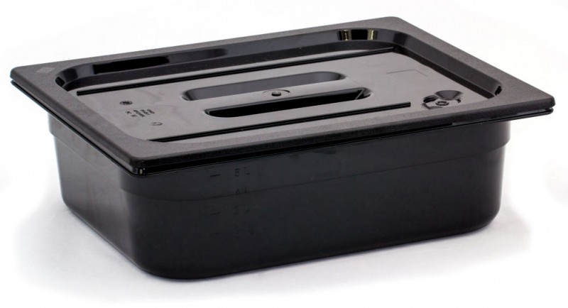 Hoogwaardige professionele Gastronorm producten gemaakt van zwart polycarbonaat. Reuk- en smaakvrij.