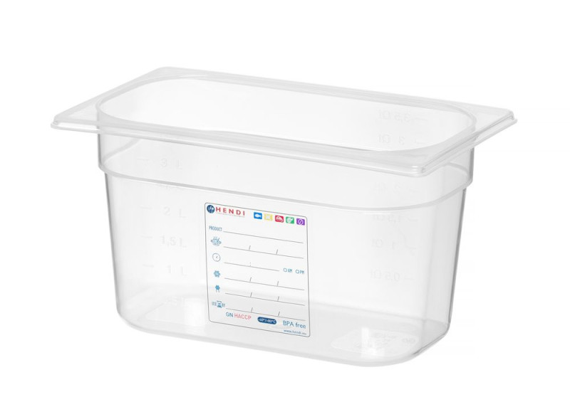 Gastronorm bakken los - deksels niet inbegrepen. Luchtdicht afsluitbaar. Smaak- en reukvrij. Deksels en deksel clips (groen, geel, blauw, rood of paars volgens HACCP normen) los verkrijgbaar. Met slijtvast etiket voor voedsel opslag registratie. Speciale horecastiften niet inbegrepen.