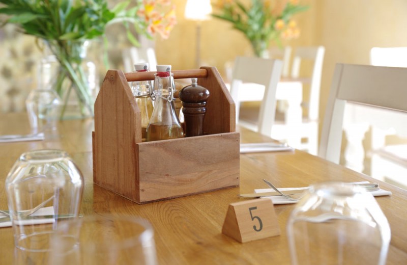Gemaakt van duurzaam hout. Heeft twee compartimenten en een groot handvat.