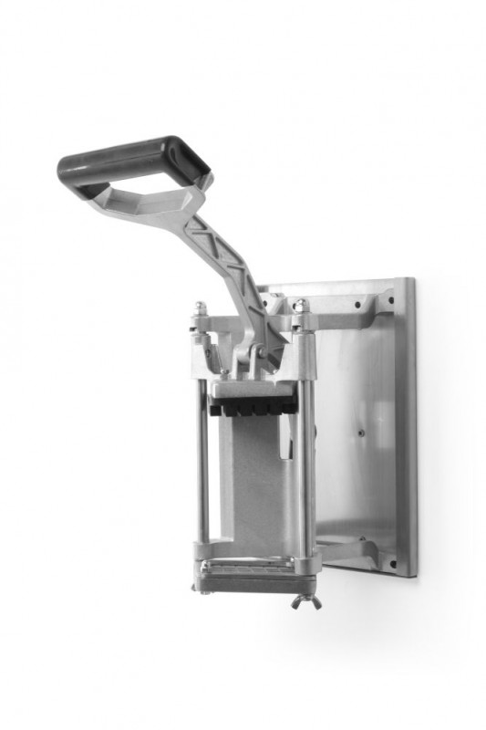 Gemaakt van gietaluminium, messen van roestvast staal. Wordt geleverd met 4 messen: 6, 9 en 13 mm, en een mes voor 8 partjes. Geschikt voor montage op muur of werkblad. Handvat bedekt met plastic voor extra grip. Speciale bevestigingsplaat maakt verwijderen en reinigen makkelijk. Zuignap voeten zorgen voor extra stabiliteit bij het gebruik op een tafel.