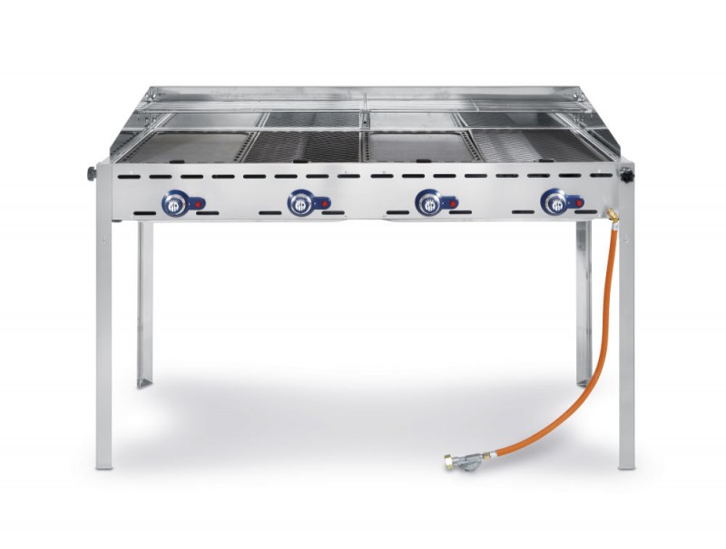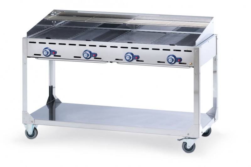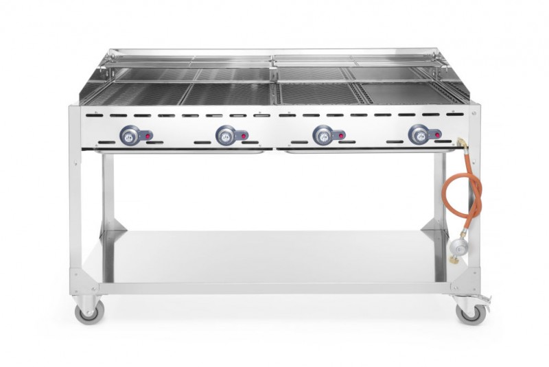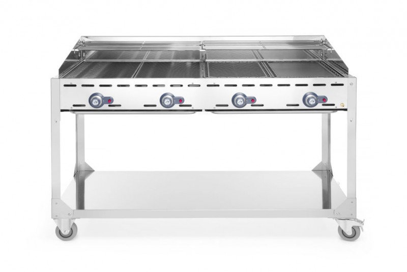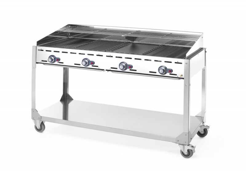 Green Fire Met 4 Branders, Hendi, Profi Line, op Verrijdbaar Onderstel, Lichtgrijs, 22kw, 1400x612x(h)825mm | H149614