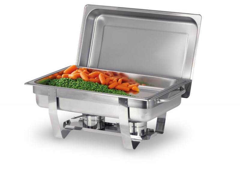 Bestaande uit: Chafing Dish “Fiora” als 471005, 2 extra bakken GN 1/2 65 mm diep en 3 extra pannen GN 1/3 65 mm diep.
