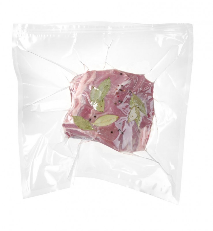 Speciaal voor gebruik in combinatie met het sous vide systeem. 2-laags zakken. Binnenlaag van Polyethyleen is geschikt voor contact met voedsel en is 60 µm. Buitenlaag van Polyamide (Nylon) is 15 µm. Totale dikte 75 μm. De gebruikte materialen fungeren als een UV-filter. De zakken kunnen worden gebruikt bij temperaturen van -20˚ tot 110˚C. Geschikt voor vacuümkamerverpakkingsmachines.