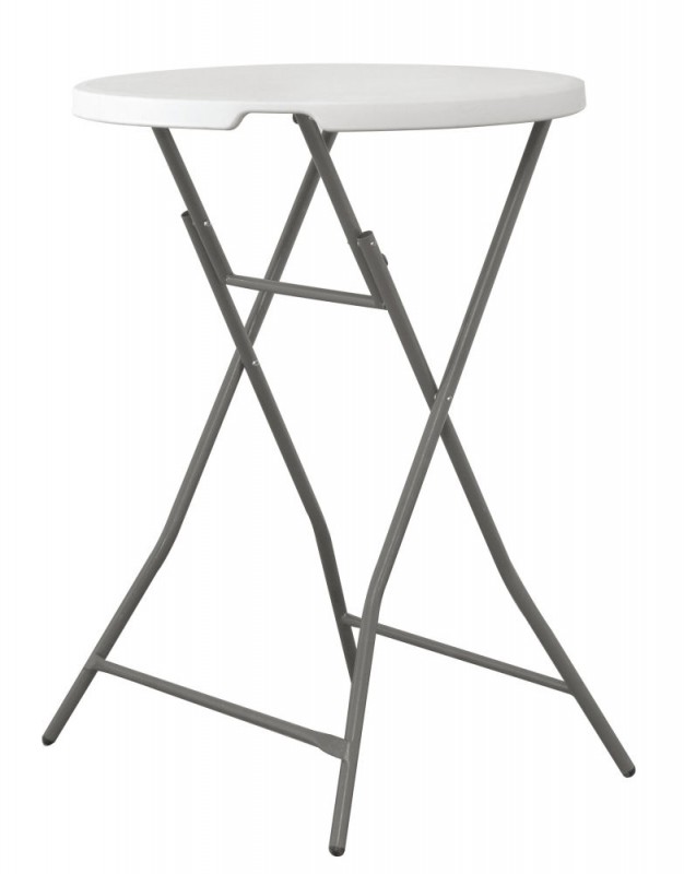Gemakkelijk te vervoeren en op te bergen inklapbare meubels voor binnen en buiten gebruik. Ideaal voor beurzen, evenementen, catering, verhuur, etc. Tafelblad van HDPE polyethyleen, frame gemaakt van gepoedercoat metaal. Gemakkelijk te reinigen en vuilwerend.