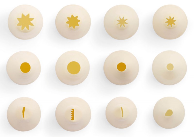 Set van 12 verschillende spuitmondjes in opbergbox.
