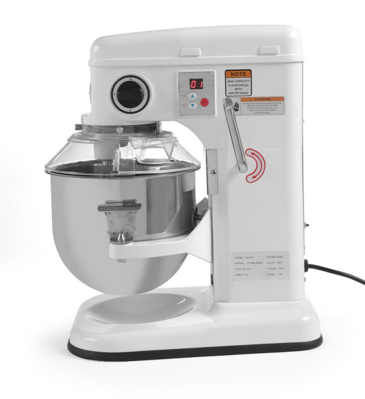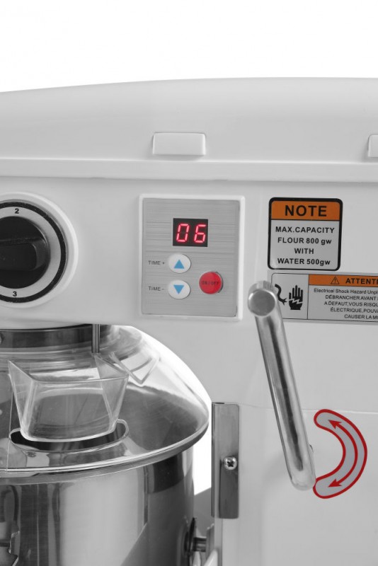 Hoogwaardige behuizing van staal, spuitgegoten afdekkap en veiligheidskap van plastic. Wormschroef en tandwielen ontworpen voor intensief gebruik. Veilig in gebruik dankzij meerdere veiligheidsschakelaars en bescherming tegen overbelasting. Inclusief kom, garde, klopper en deeghaak van roestvast staal. Eenvoudig te gebruiken digitaal bedieningspaneel. Maximale capaciteit voor het mixen van bloem: 0,8 kg. Met handgreep om de kom in positie te tillen. Veiligheidsschakelaars op de mixer kop, de mixer wordt uitgeschakeld bij opklappen. 3 snelheden: 128/ 252/ 545 tpm.