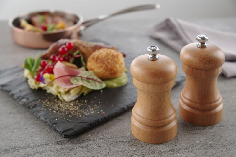 Duurzaam keramisch maal mechanisme, de precieze plaatsing van het maalwiel laat een ruimte tussen de tanden zodat slijtage verminderd wordt. Pepermolen voorzien van een uniek mechanisme voor het instellen van de maalgraad, instelbaar in 4 stappen van fijn tot grof. De dop is eenvoudig te verwijderen voor navullen, de spanning van de montageschroef heeft geen invloed op de maalgraad van de pepermolen. Beschikbaar met het uiterlijk van beukenhout (licht) of walnotenhout (donker).