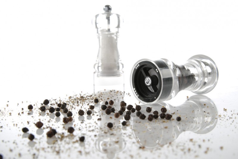 Gemaakt van transparant kunststof (PMMA). Duurzaam keramisch maal mechanisme, de precieze plaatsing van het maalwiel laat een ruimte tussen de tanden zodat slijtage verminderd wordt. Pepermolen voorzien van een uniek mechanisme voor het instellen van de maalgraad, instelbaar in 4 stappen van fijn tot grof. De dop is eenvoudig te verwijderen voor navullen, de spanning van de montageschroef heeft geen invloed op de maalgraad van de pepermolen.