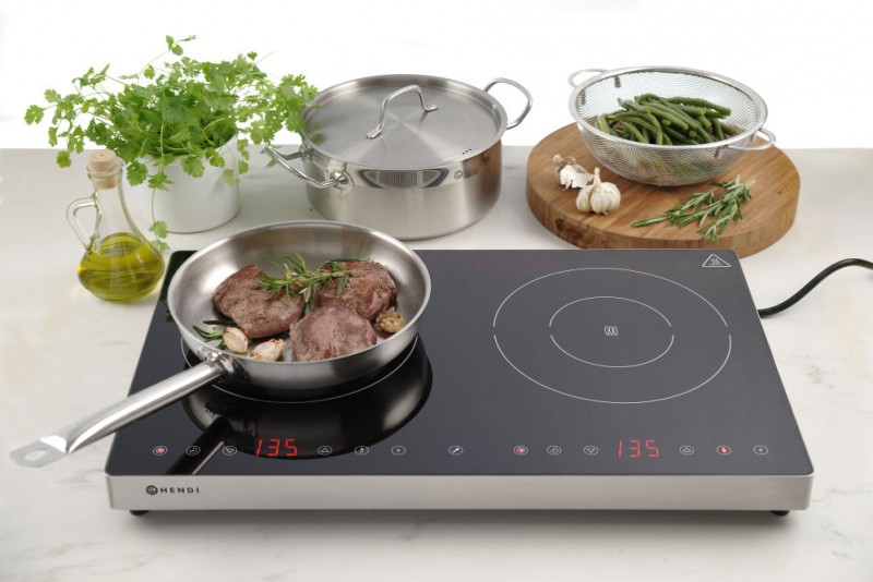 Aanraakgevoelige bediening, vermogen of temperatuur instelbaar in 10 stappen. Met boost modus welke tijdelijk een deel van het vermogen van de rechter kookzone naar de linker omleidt. Linker kookzone geeft 1800W, of 2000W bij gebruik boost functie. Rechter kookzone geeft 1700W, of 1500W bij gebruik boost functie. Temperatuur bereik: 35-240˚C. Geschikt voor pannen met een bodemmaat van minimaal ø120 mm tot ø220 mm.