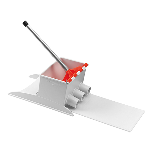 voor de produktie van aardappelkroketten (warm verwerken) of andere kroketten (gekoeld verwerken) in grote hoeveelheden, door de hefboom naar beneden te bewegen komen gelijke rollen uit de cylindervormige uitgangen, de rollen brengen de transportplank in beweging tot dat deze geheel gevuld is waarna zij op lengte gesneden kunnen worden, heeft 3 uitloopgaten, is vervaardigd uit kunststof met aluminium hefboom