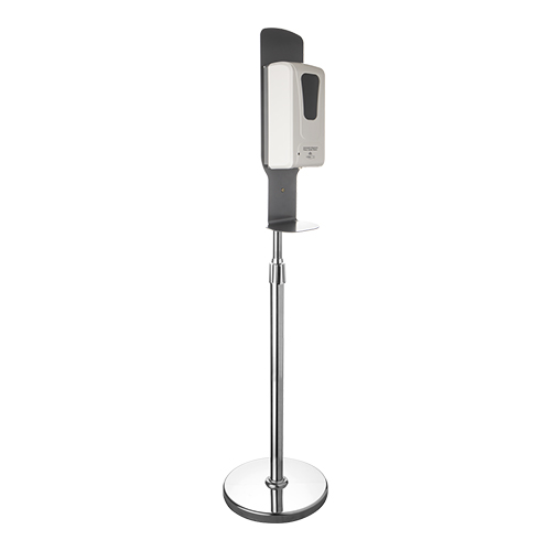 geschikt voor ontsmettingsmiddelen op alcoholbasis, eenvoudig na te vullen en werkt automatisch met infrarood sensor, in hoogte verstelbaar model met verzwaarde basis voor extra stabiliteit en is eenvoudig te monteren, inhoud 1 liter
