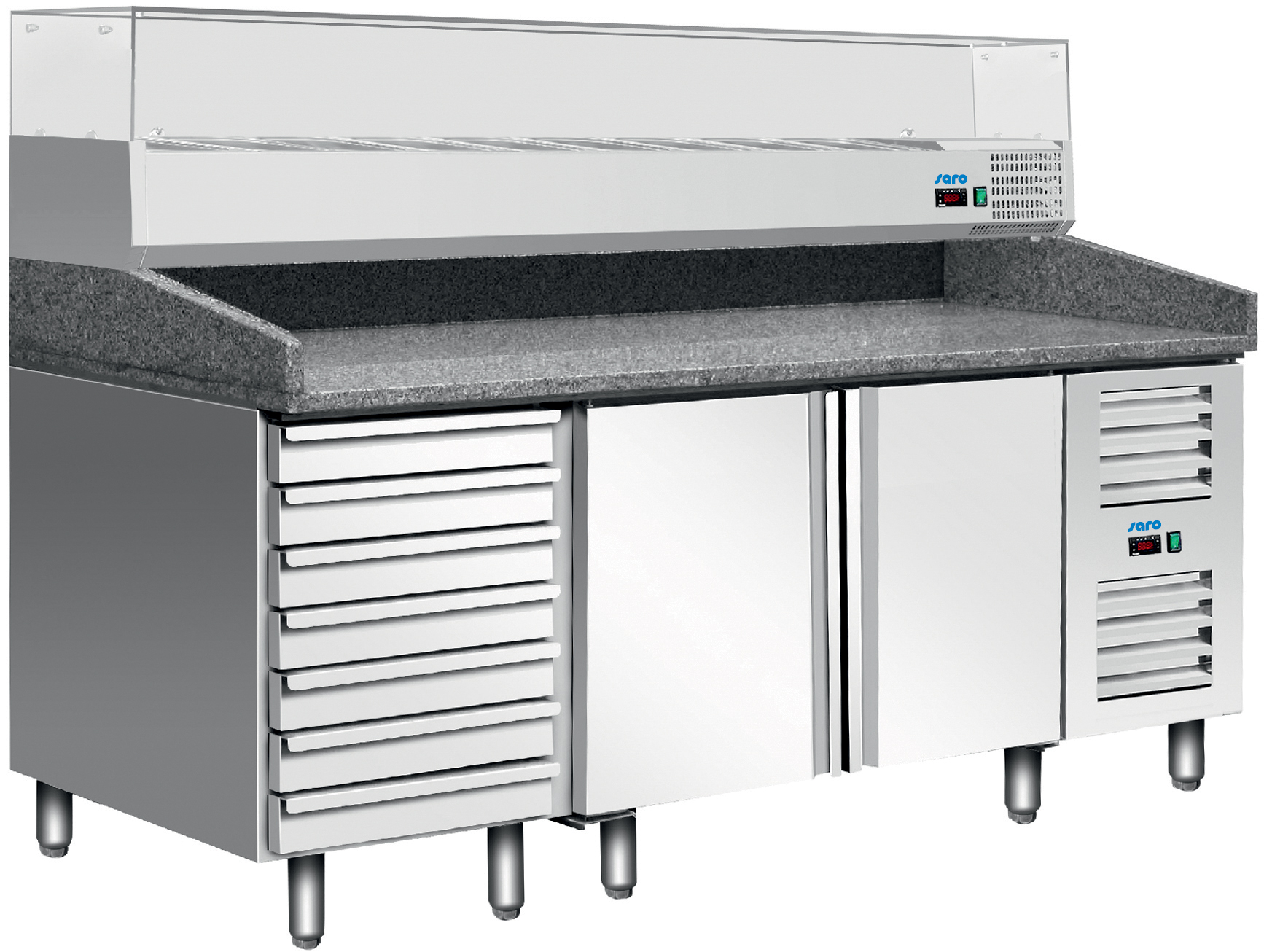 SARO Pizzawerkbank met glasvitrine model PS 300 G