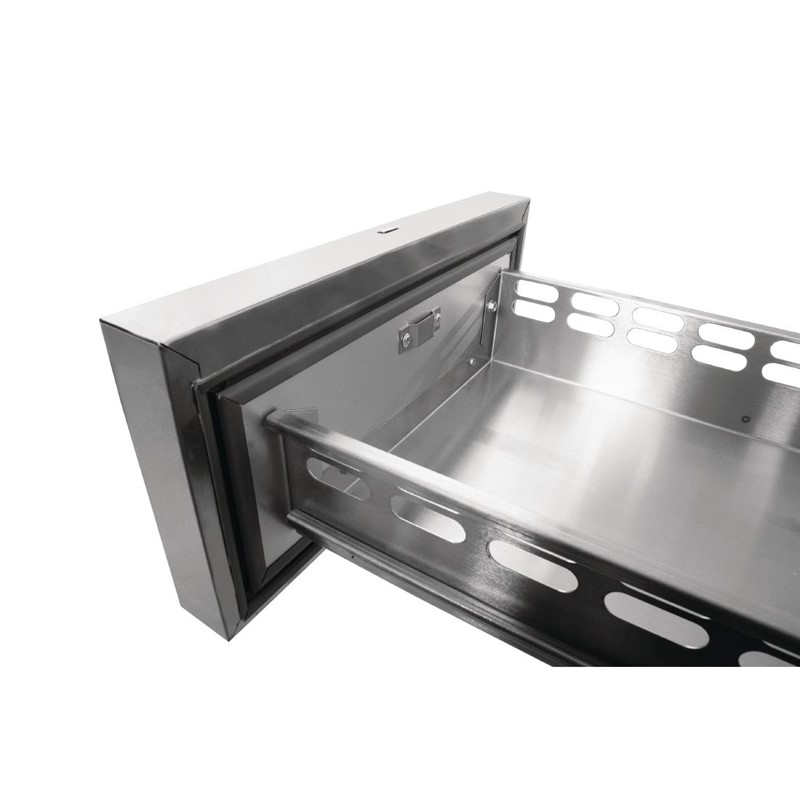 Lades geschikt voor 1x 1/1 pan of equivalent. Max. diepte bovenste ladepan = 75 mm. Max. diepte middelste en onderste lade = 100 mm.