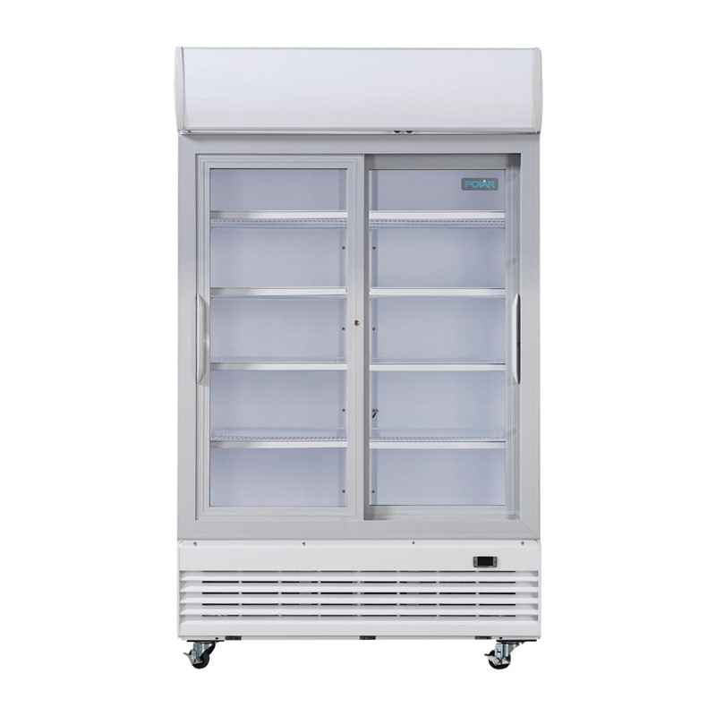 Polar G-serie Tweedeurs Displaykoeling Met Lichtbak 950l Schuifdeuren | GE581