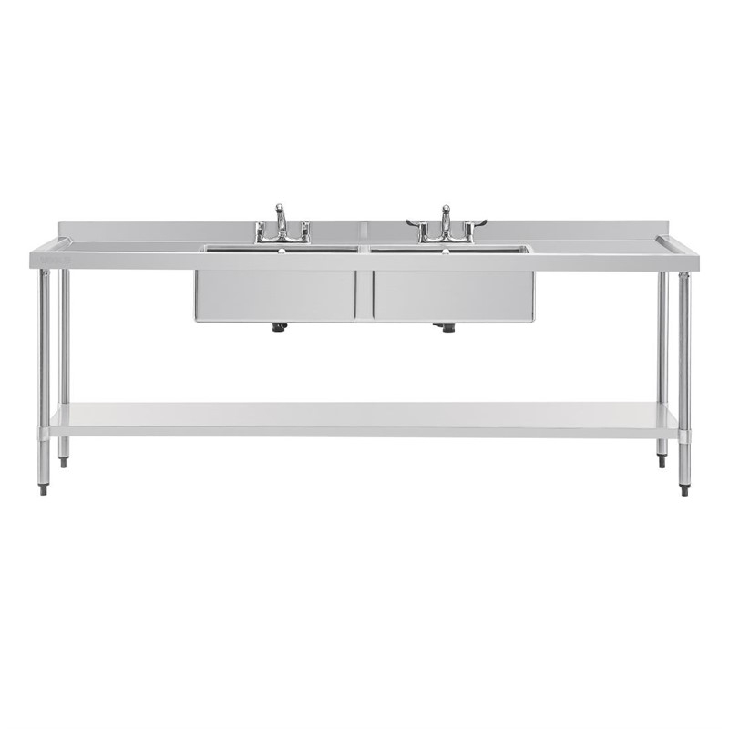 Vogue Rvs Spoeltafel Dubbele Spoelbak Afdruiprek Links en Rechts 240x60cm | U910