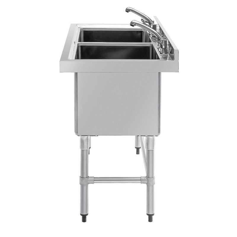 Diepe spoelbak voor het eenvoudig wassen van grote pannen en GN-bakken enz. De verhoogde rand voorkomt lekken en zorgt ervoor dat resten weer in de spoelbak komen, een opstaande rand aan de achterzijde voorkomt dat producten achter het werkblad vallen tijdens gebruik. Verstelbare poten zorgen voor een stabiele plaatsing op vrijwel elke ondergrond. Geleverd met stop en wandbevestigingen voor extra stabiliteit.