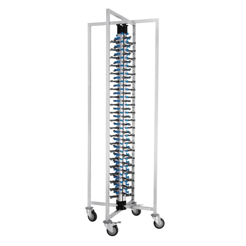 Met dit mobiele bordenrek bespaart u veel ruimte en tijd. Het rek heeft ruimte voor 84 borden van 30cm. 1900(H) x 700(B) x 700(D)mm.