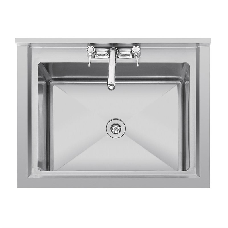 Diepe spoelbak voor het eenvoudig wassen van grote pannen en GN-bakken enz. De verhoogde rand voorkomt lekken en zorgt ervoor dat resten weer in de spoelbak komen, een opstaande rand aan de achterzijde voorkomt dat producten achter het werkblad vallen tijdens gebruik. Verstelbare poten zorgen voor een stabiele plaatsing op vrijwel elke ondergrond. Geleverd met stop en wandbevestigingen voor extra stabiliteit.