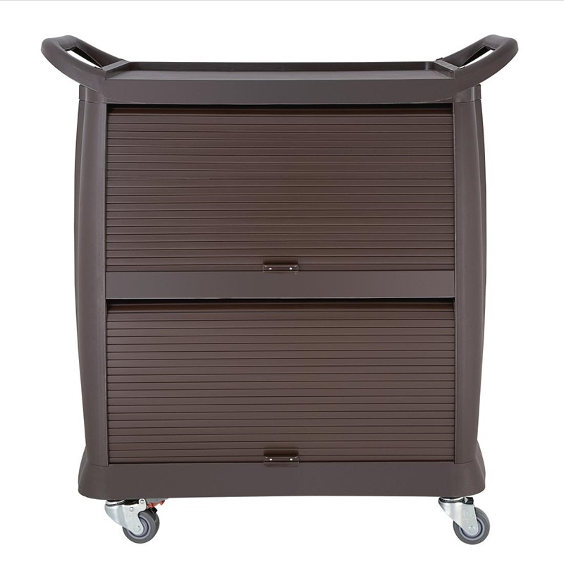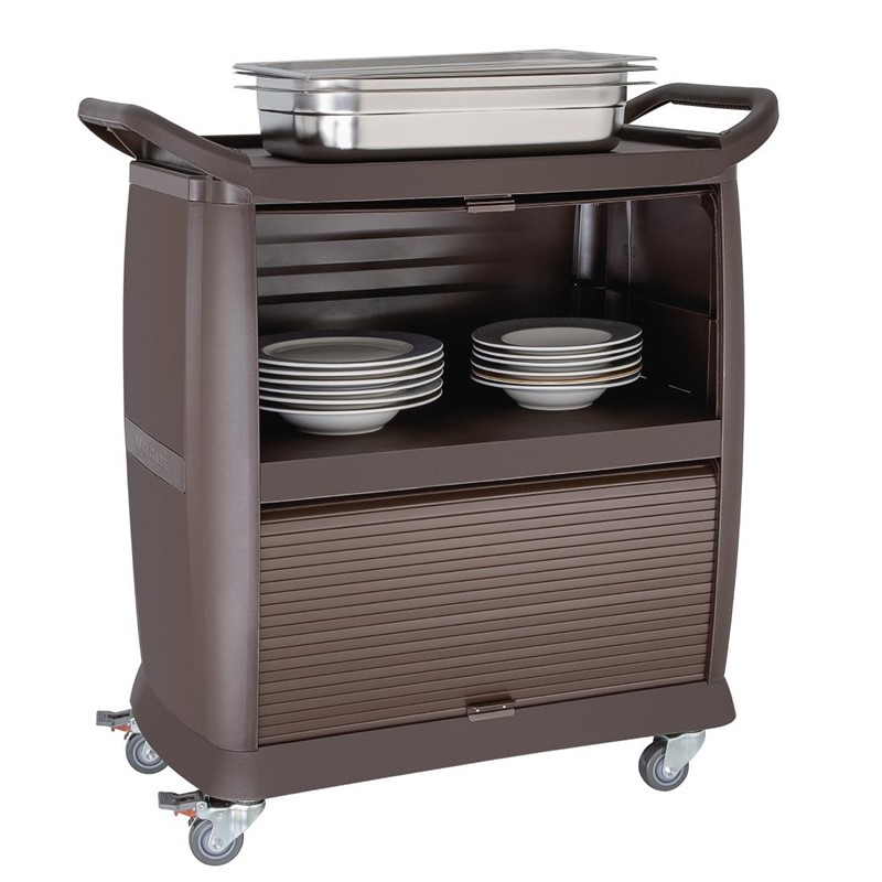 Sterk, duurzaam en modern design geschikt voor restaurant, hotel en institutionele toepassingen. Voorzien van roldeuren voor opslag of bescherming van goederen.