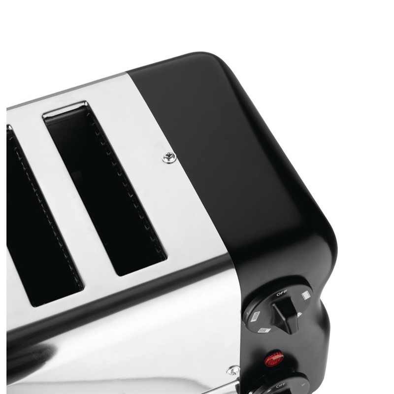 Stijlvolle broodroosters met instelbare timer en afzonderlijk in te schakelen sleuven. Reserve-elementen en tostihouder inbegrepen.