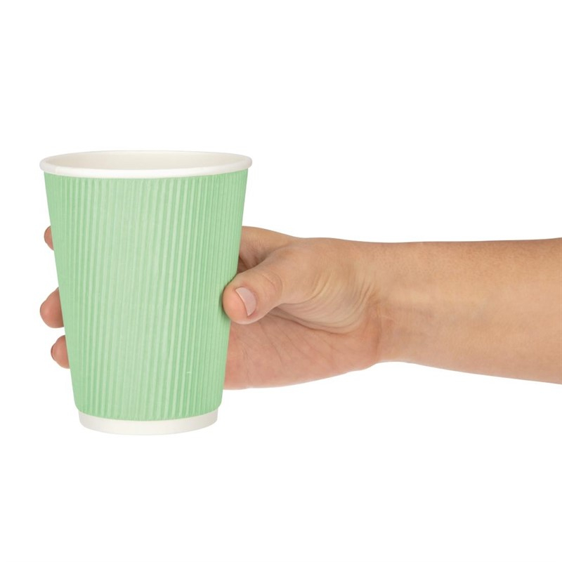 Fiesta Recyclable Koffiebekers Ribbelwand Turquoise 340ml (500 Stuks) | GP422
