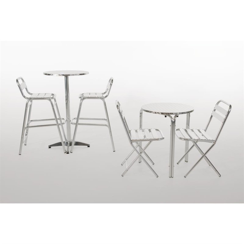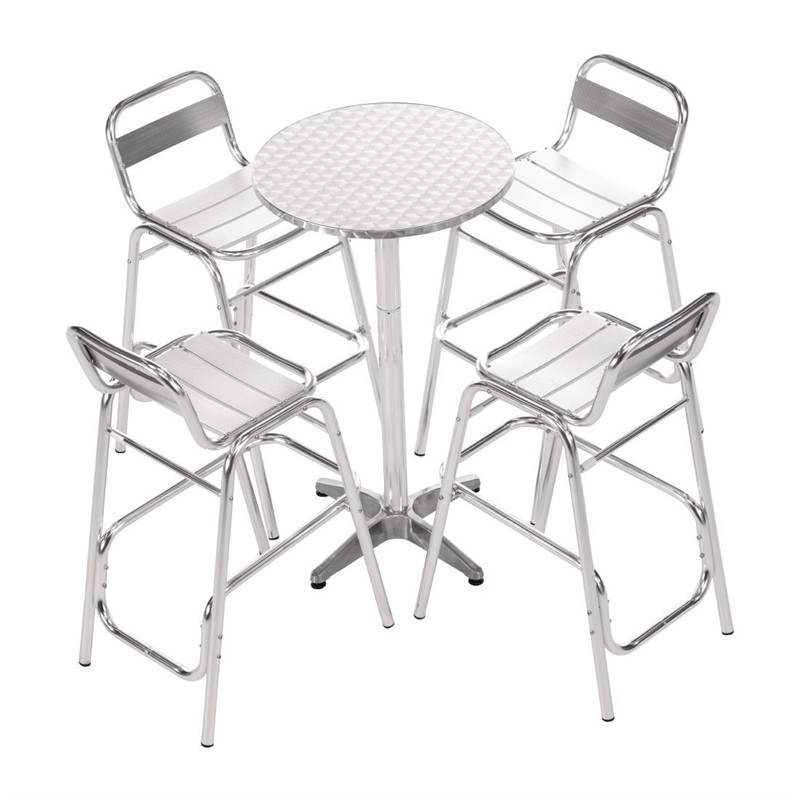 Statafel met RVS blad voor zowel binnen- als buitengebruik. Absoluut weerbestendig en onderhoudsvrij. Extra verzwaarde gietijzeren voet voor meer stabiliteit.