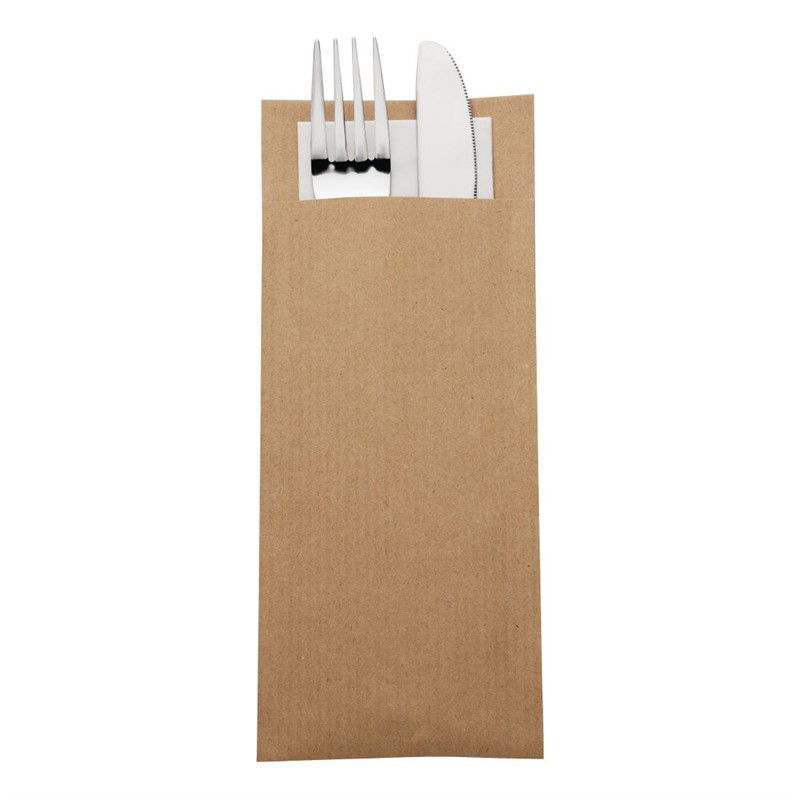 Europochette Bruin Bestekzakje Met Wit Servet (500 Stuks) | CK235