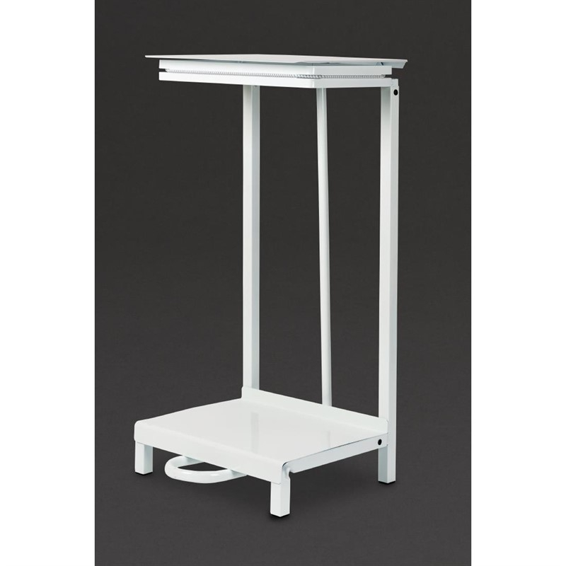 Vrijstaande vuilinszakhouders verkrijgbaar in wit gecoat staal of RVS. Door pedaalbediening eenvoudig handsfree te gebruiken, perfect voor het afruimen van dienbladen. Helpt kruisbesmetting te voorkomen. Zak eenvoudig te vervangen.
