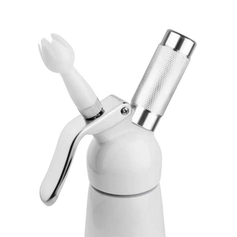 Slagroomapparaten met 3 spuitmonden voor een verscheidenheid aan decoratieve effecten met slagroom of sauzen. Volledig metalen fles en kop voor langere levensduur