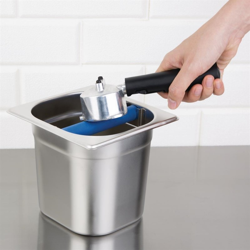 RVS GN 1/6 bak met vaste PVC klopstang.
