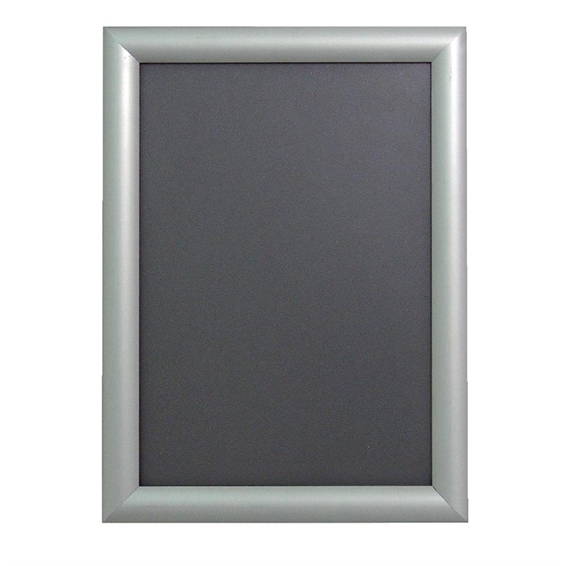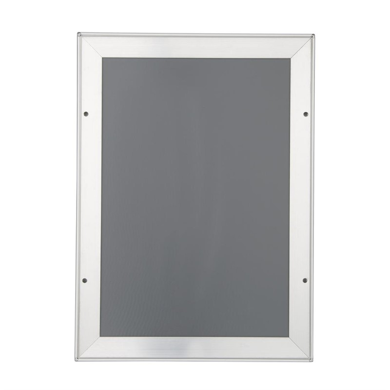 Eenvoudig te openen om de inhoud te wisselen. Gemaakt van niet reflecterend pvc. Mat zilveren aluminium 25 mm rand. Wordt geleverd zonder muurbevestigingmaterialen.