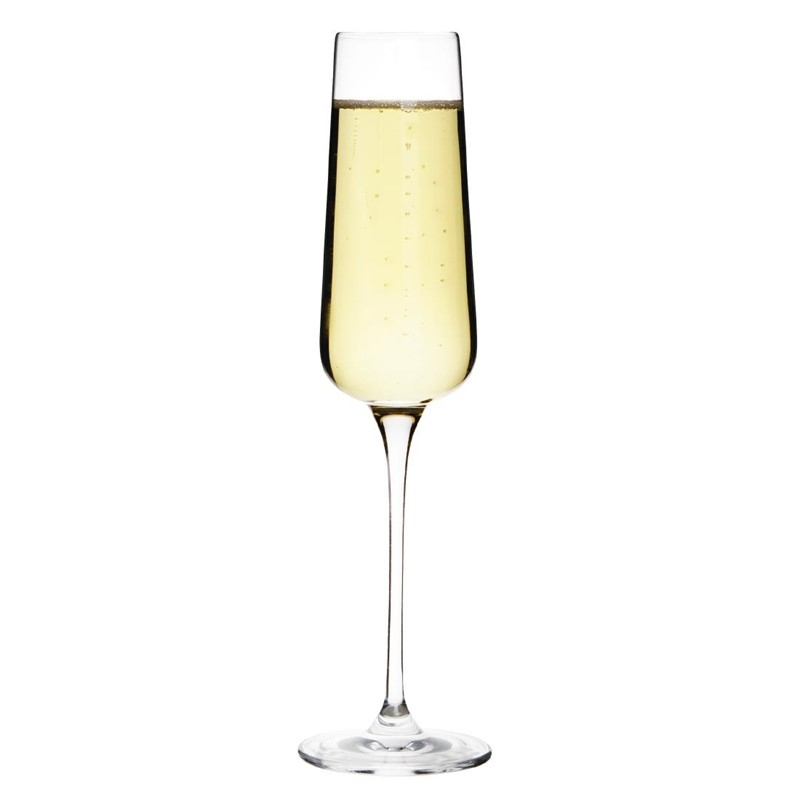 De smalle kom maakt dit glas het meest geschikt voor droge champagnes en mousserende wijnen