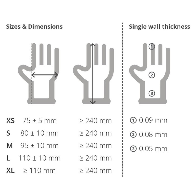 Vermindert kruisbesmetting en huid allergieën. Bestand tegen olie en chemicaliën. Gemaakt van synthetisch rubber zonder natuurlijk rubber. Voldoen aan EN455 norm. Verkrijgbaar in de maten S, M, L en XL. Doos van 100 stuks.