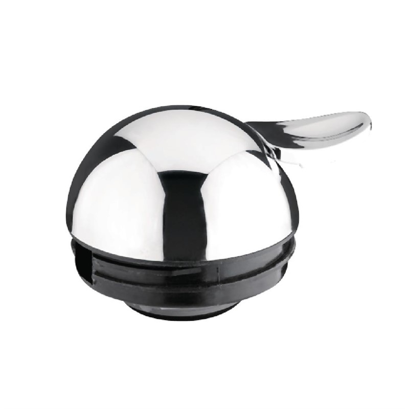 Verchroomde RVS thermoskan met glazen binnenkan. Om dranken warm of koud te houden. Met drukknop.