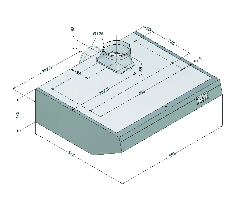 Afmetingen: B 600 x D 520 x H 170 mm