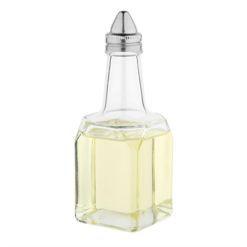 Glazen olie-/azijnflesje met verchroomde dop voor gebruik met rekje of tafelorganiser. 14,7(h)x5cm.