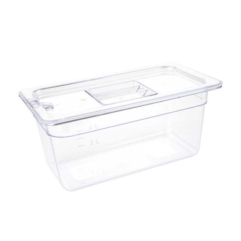 Alleen de polycarbonaat GN deksels van Vogue zijn geschikt voor deze bak