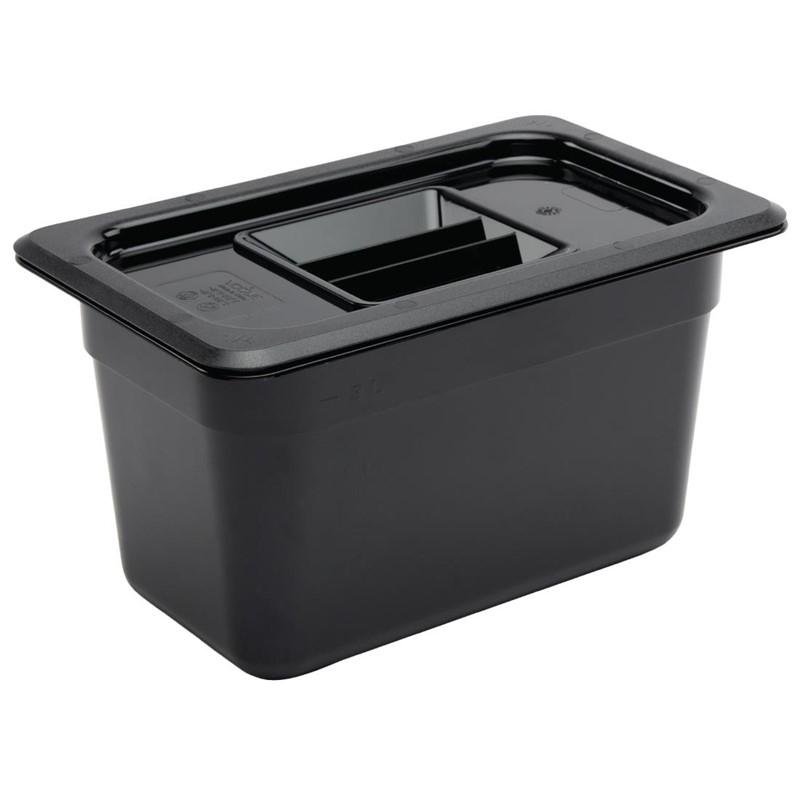 Vogue Polycarbonaat Bak Zwart GN 1/4 150mm | U468