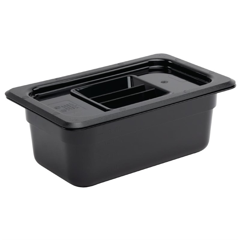 Vogue Polycarbonaat Bak Zwart GN 1/4 100mm | U467