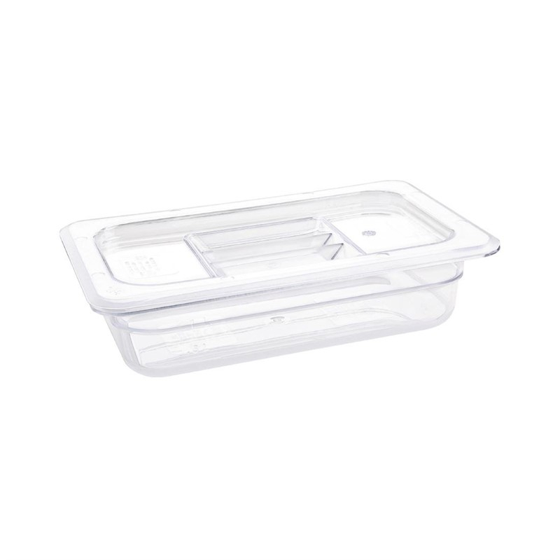 GN 1/4. Transparant. 65mm diep. Inhoud: 1,6L.