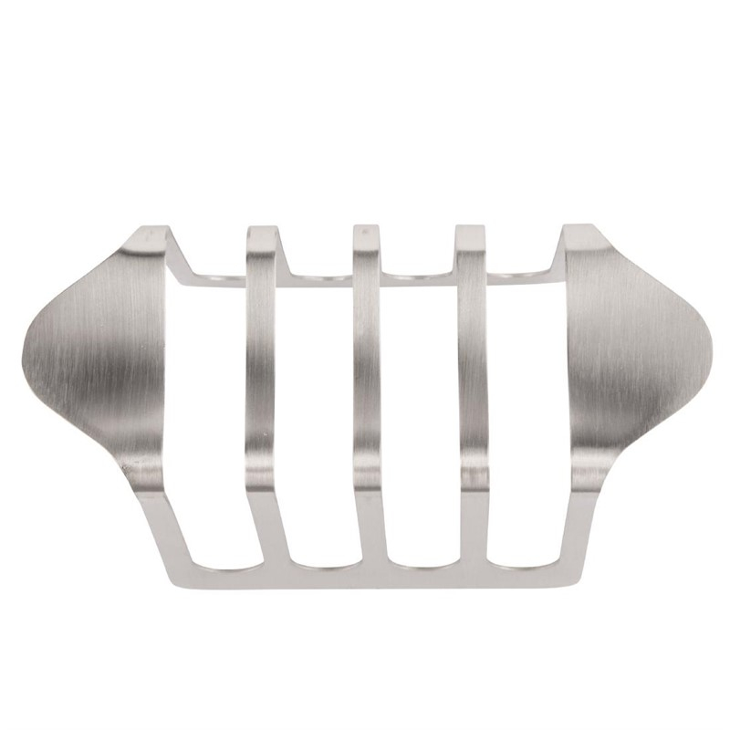 Roestvrijstalen toastrek met vier sleuven ideaal voor ontbijtservice. Afmetingen 6,5(h)x11,5(b)x9(d)cm.