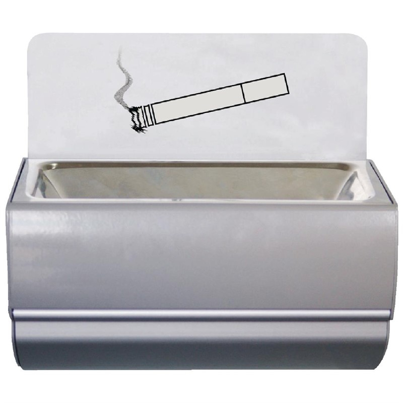 RVS constructie met 2 stickers, voor gebruik in rookruimtes en rookvrije ruimtes. Scharnierende bak kantelt naar voren voor eenvoudig legen. Ideaal voor entreehallen. Geschikt voor montage op elke vlakke ondergrond (montagekit meegeleverd).