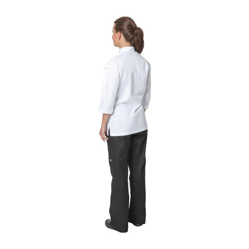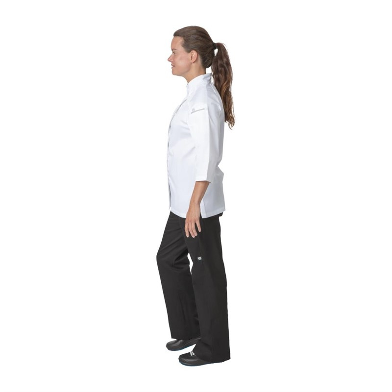 Een eigentijdse dames koksbuis, die stijlvol, vrouwelijk en functioneel is. Voorzien van splitjes en thermometerzakje. Cool Vent stukken op de mouwen.