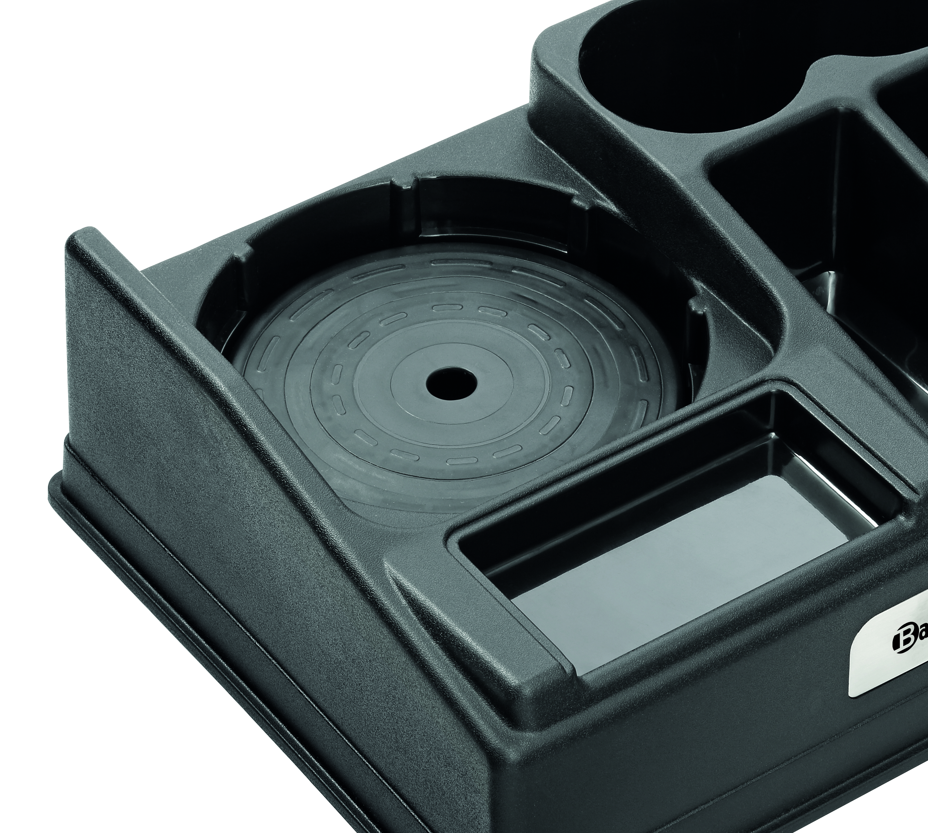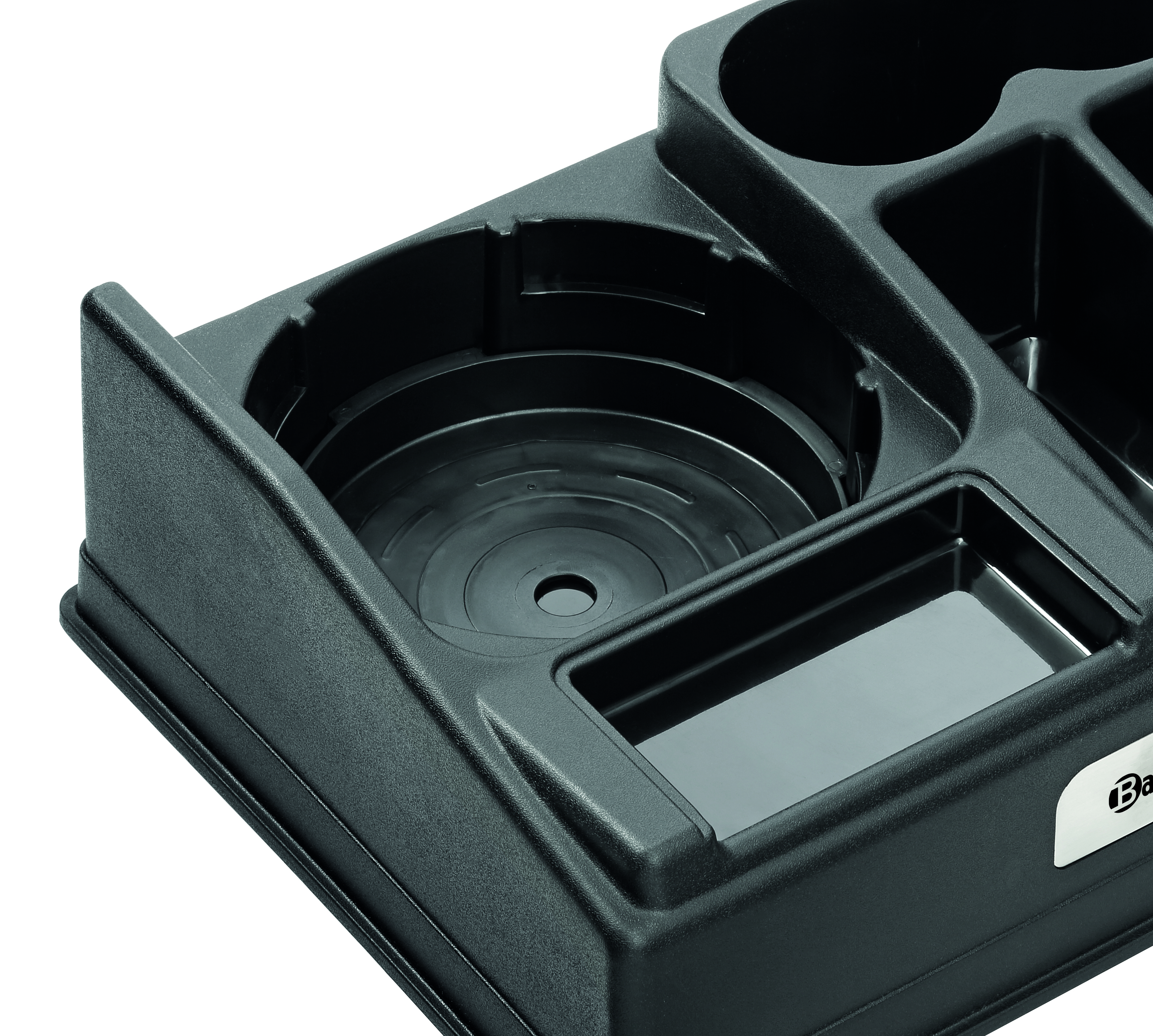 Eigenschappen: 5 opbergvakken voor bekers, lepels/roerstaafjes, melk en suiker ,Kunststof inzet op 3 hoogten instelbaar