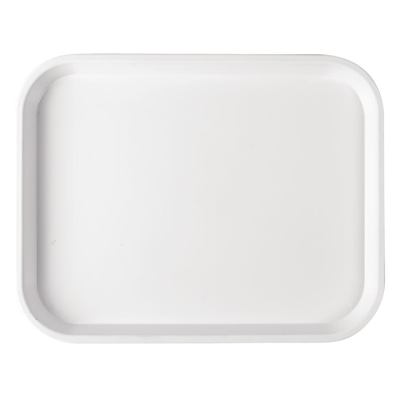Schalen in mat wit polystyreen of slagvast ABS. Beide voedselveilig materiaal.